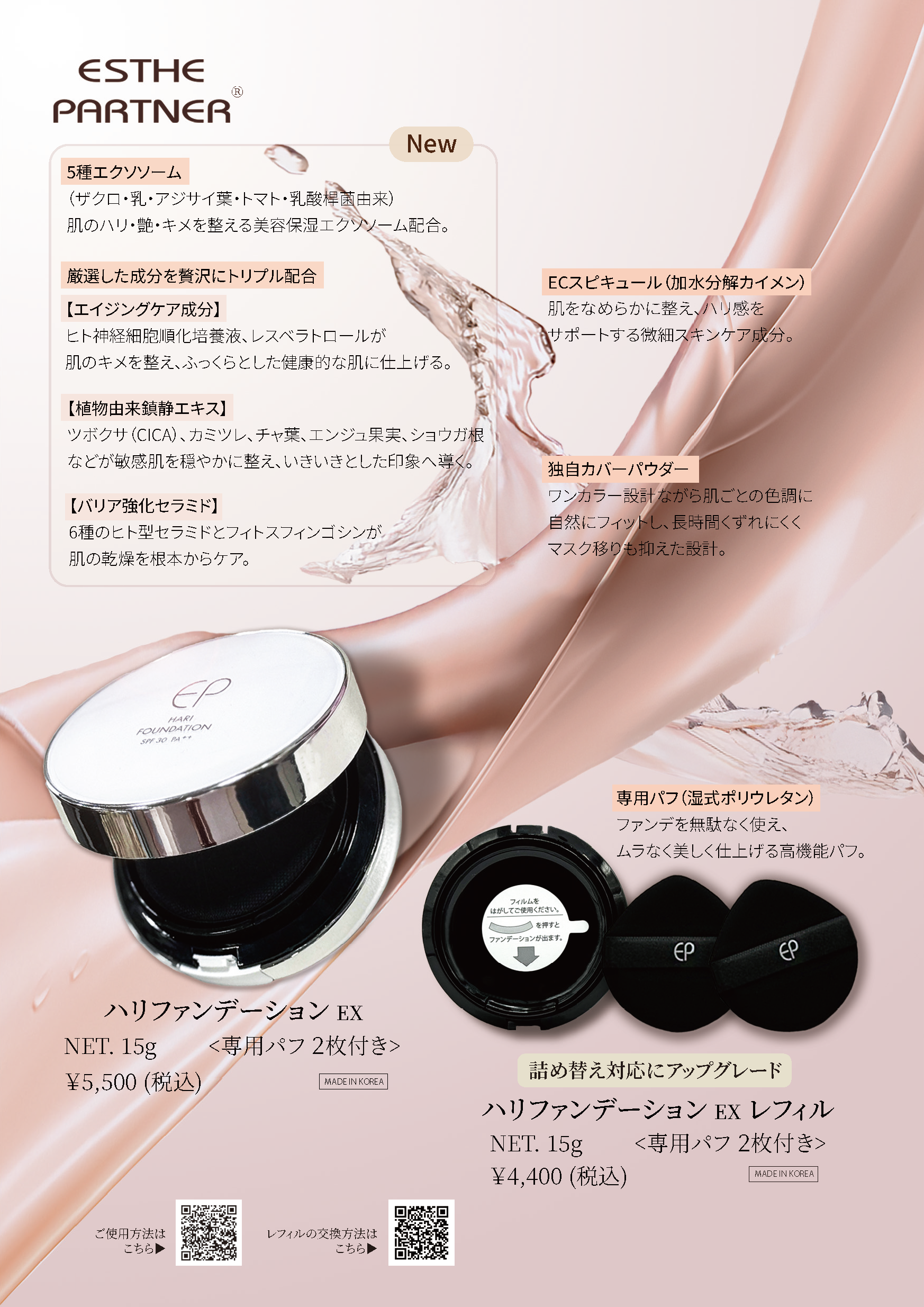 ハリファンデーションには自社開発のテクノロジーで、配合成分に特殊加工して生成される「カバーパウダー」を使用しています。